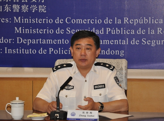 张俊海书记在结业典礼上讲话,他代表山东警察学院对研修班顺利结业表示祝贺。他说,在山东警察学院期间,我们组织有关专家学者向大家介绍了中国国情、中国法律制度、中国公安管理体制、中国儒家文化、太极拳、中国刑事执法规范化建设、警务实战技能、警务指挥体系、中国国际警务合作、现代社区警务战略、紧急警务处置、信息主导警务、中国治安防控体系建设等专题和内容。同时,大家还与山东警察学院的专家学者以及在我院参加培训的全省部分公安机关的警官进行了座谈交流。此外,我们还组织大家考察了德州市公安局,游览了济南趵突泉、大明湖、山东省博物馆等景点。通过这些专题、交流和参观考察活动,使大家对中国的公安机关和公安工作以及经济社会发展情况有了初步的了解。张俊海书记指出,通过本期研修班的成功举办,必将进一步增强中国同在座各国间的友谊和相互信赖,进一步促进各国警方的相互理解与友好合作。