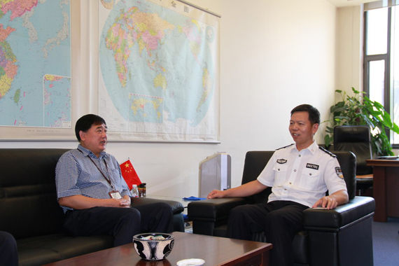 公安部国际合作局局长廖进荣会见了张俊海书记。廖进荣局长对我院的外警培训等工作给予了充分肯定。他感谢山东警察学院多年来对国际合作局有关工作特别是外警培训工作的支持。他说,外警培训工作现在已成为公安部一项重要工作,每年的培训规模都在扩大,希望山东警察学院再接再厉,充分发挥自己的优势,在今后的工作中取得新的更大的成绩。一是要明确培训的目的。要让参加培训的外警感觉到中国的友好,要通过培训,把中国的执法规范化和司法制度灌输给他们,得到他们的认可。二是在教学上,在安排学校教师讲授的的同时,要更多的把实战部门的同志请进来;除理论教学外,要更多的安排到实战部门进行实践教学。三是要加强对参训学员联络,注重收集他们的反馈意见。