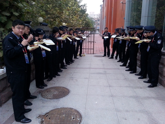 参加安保人员就餐