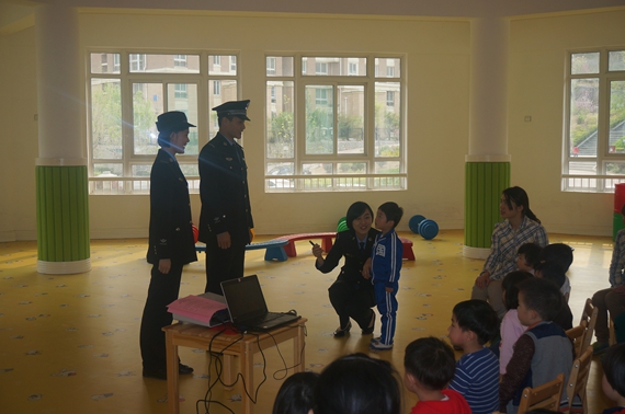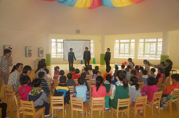 在全国第十九个安全教育日之际,3月31日,治安系2011级本科二大队学员走进济南市英华园幼儿园,到孩子们中间开展安全宣传活动,普及安全防范知识。