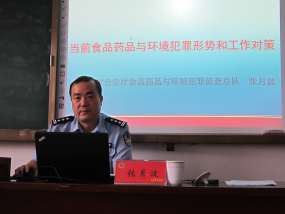 授课期间,张月波总队长介绍了当前国内特别是全省在食品领域、药品领域和环境领域面临的严峻形势以及违法犯罪特点,深刻剖析了当前工作存在问题,围绕转变理念、加强对食药环境犯罪的规律研究、进一步推进两法衔接等工作对策进行了详细阐述。