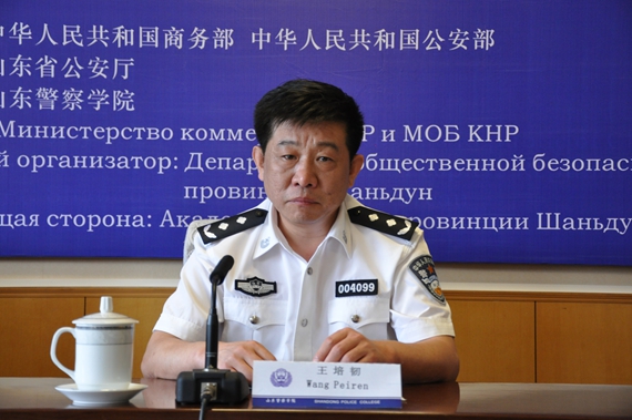 王培韧副院长在结业典礼上讲话,对培训班的顺利结业表示祝贺。他说,在山东警察学院学习期间,我们组织有关专家学者向大家介绍了中国国情、大型活动安全保卫要点及方案制订、群体性事件现场处置、中国公安机关的执法规范化建设、中国法律制度、大型活动交通组织、大型活动场馆安全检查、警务实战技能、信息主导警务、太极拳、中国警务指挥体系等专题和内容,同时大家还与学院的专家学者以及在我院参加培训的山东省公安厅青年干部培训班的学员进行了座谈交流。此外,我们还组织大家考察了济南市公安局特警支队,游览了济南的百脉泉、趵突泉、大明湖、山东省博物馆。通过这些专题、交流和参观考察活动,使大家对中国的公安机关和公安工作、经济社会发展和中国人文传统等情况有了相对全面的了解。王培韧副院长指出,中国同上合组织各国之间有着悠久的合作历史和传统友谊,当前,我们都面临着促进经济发展、维护社会稳定的共同任务。相信,通过本期研修班的成功举办,必将进一步深化各国警方业已存在的良好合作和相互支持,进一步增强中国同在座各国之间的团结和合作。
