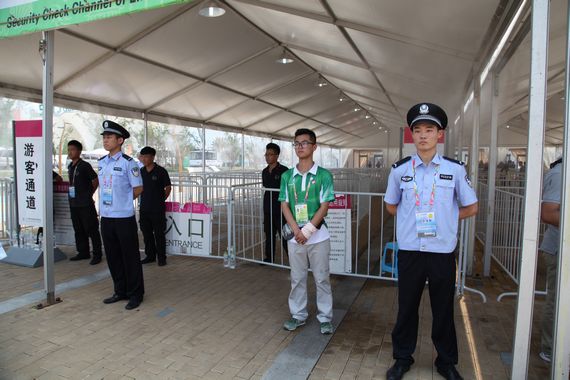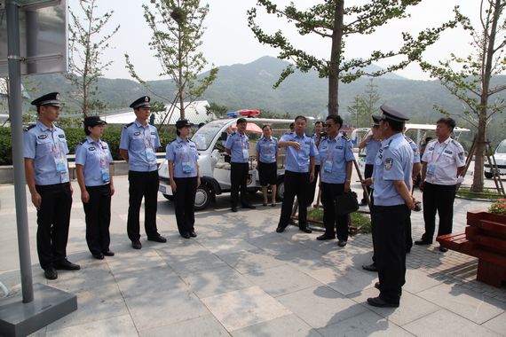 上岗培训期间,带班民警严格要求,指导细致规范,学生们虚心接受传帮带,严格按规范操作,一丝不苟,学以致用。在岗期间,听从指挥,服从安排,着装统一,纪律严明,积极发扬不怕疲劳连续作战优良作风,时时处处严格要求自己,主动学好本领。我院带队老师加强内外协调,积极创造环境,严格驻地备勤学生管理,认真做好思想动员、信息宣传和后勤服务保障等工作。每天,带队老师亲自将学生送到上岗地点,跟班作业一丝不苟,确保了学生安全。7月14日,在市北、李沧公安分局有关部门负责同志陪同下,学院青岛世园会安保工作组全体带队老师集体到我院执勤学生的各岗点检查了学生上岗情况,对学生认真做好各项勤务工作给予肯定。