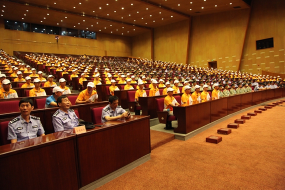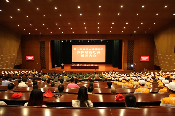 8月9日上午,我院驻建邺区的90名安保学生代表在金陵会议中心参加了青奥会建邺区安保战前动员誓师大会。