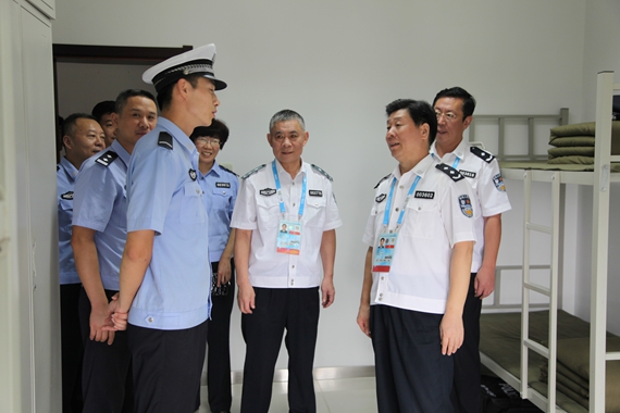 8月12日至13日,学院南京青奥会安保工作领导小组组长王兴发带领领导小组有关同志,先后来到我院安保师生入驻的浦口公安分局、江宁公安分局、交管局以及治巡支队等受援单位所属有关执勤岗点,看望慰问广大执勤学生。每到一个处,王兴发代表学院党委亲切问候同学们,他说,张俊海书记和学院党委的同志对在南京执行青奥会安保任务的师生非常牵挂,委托我专程看望大家,同学们肩负着学院党委的重托到南京执行安保任务,使命光荣,责任重大。希望大家珍惜这次难得机遇,虚心接受南京民警的传帮带,切实加强学习和锻炼,不断提高实战应用能力,在不同的执勤岗位上聚精会神的履行好职责,充分发挥自身应有作用。围绕做好即将举行的青奥会开幕式安保和在下一步的执勤工作,王兴发要求全体学生继续发扬我院师生在历次大型安保活动中形成的优良作风,服从命令、听从指挥、严守纪律、恪尽职守,文明执勤,热情服务,努力做到坚持最高标准,保持最佳状态,把最美形象留在南京,全力配合南京公安机关完成好各项安保任务。