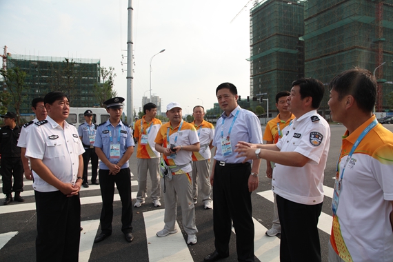 南京市公安局副局长王秉德,青奥会安保部部长助理夏冰全程陪同参加活动。建邺区公安分局局长汪冰,江宁区公安分局局长赵立宏、政委张进,交管局副局长张建彬,浦口区公安分局政委金海祥以及学院驻南京前方工作组有关同志和各驻地带队老师参加了活动。