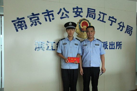 8月27日下午,南京市公安局刑侦局副局长李杭,江宁公安分局局长赵立宏、副局长候卫东等领导同志专程到邢恩铭同学所在工作岗位江宁公安分局滨江开发区派出所召开 “8、23”杀人案件表彰会。表彰在“8、23”杀人案件中我院邢恩铭等4名有功人员,并当场颁发奖金20000元。治安系带队老师周家稳出席了表彰会。