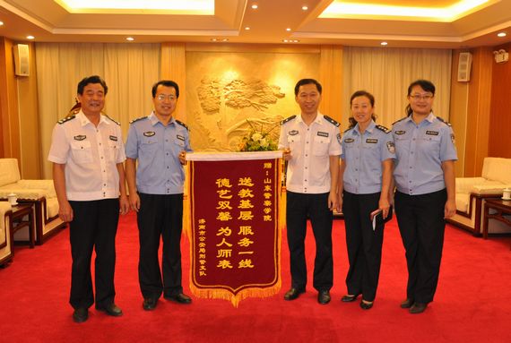 9月12日下午,济南市公安局刑警支队领导专程来我院赠送锦旗,感谢我院工会在暑假期间指导市局刑警支队合唱代表队参加济南市公安局“藏蓝梦,中国梦”合唱比赛,并获得佳绩。