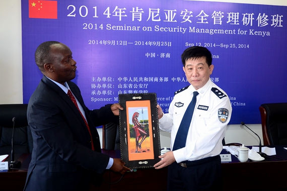 9月20日上午,2014年肯尼亚安全管理研修班在我院结业。王培韧副院长出席结业典礼,并向培训班学员颁发了结业证书,赠送了纪念品。