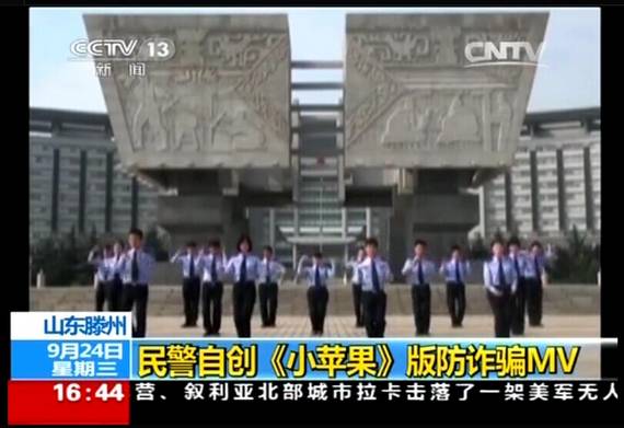 日前,我院在枣庄滕州市公安局北辛派出所实习的五位学员苗维林、裴松松、张明征、种振 、韩明甫自编自演的防诈骗版《小苹果》MV在当地社会引起巨大反响,中央电视台等多家新闻媒体也给予了广泛的关注报道。