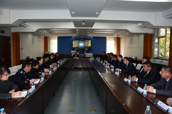 公安部国际合作局欧亚处杨敏,学院办公室、财务装备处、治安系、干部培训部负责同志参加活动。