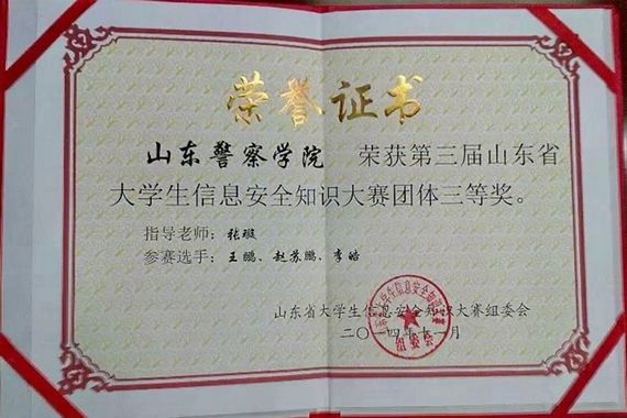 近日,我院代表队在第三届山东省大学生信息安全知识大赛中获得团体三等奖。