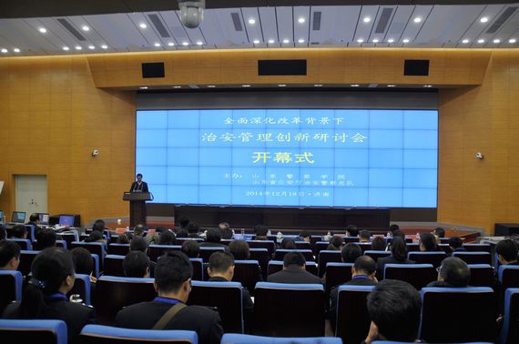 18日上午,研讨会开幕式在明水校区指挥中心实验室隆重举行。学院张俊海书记、王在山副院长,省公安厅治安总队李文勇总队长等领导同志出席开幕式。王在山副院长在会上讲话,代表学院党委和全体师生对会议的顺利召开表示祝贺,对与会专家和代表的到来表示欢迎。王在山副院长简要介绍了学院的基本情况,着重结合十八届三中、四中全会的精神阐述了举办本次研讨会的重要意义。他说,来自全国各地公安高校的专家学者、全省公安机关治安部门的业务骨干和我院专任教师将总结近年来全国公安机关治安部门社会管理创新的经验,围绕社会治安综合治理、立体化社会治安防控体系建设、社区警务、治安警务模式改革和治安管理模式创新等内容展开交流讨论。相信通过本次会议的交流平台,与会代表一定会全面把握当前治安管理工作的形势,加强治安管理理论与实践创新,同时展示山东治安管理实践的创新成果。李文勇总队长介绍了山东省当前的治安形势和治安管理改革创新的有关情况,并预祝研讨会圆满成功。开幕式期间,与会代表还观看了学院宣传片。开幕式后,中国地方志指导小组副秘书长,方志出版社社长、总编辑冀祥德教授作了《国家治理现代化和社会治安综合治理法治化》的学术报告。下午,济南市公安局历下分局贾延昭局长、北京人民警察学院冯锁柱教授等8名专家学者围绕“亲民警务”、“警务模式构建”和“社会治安防控体系完善”等分别作了主题发言。