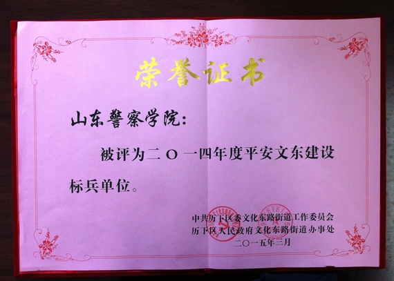 4月7日,中共济南市历下区委文化东路街道工作委员会、历下区人民政府文化东路街道办事处下发了《关于表彰2014年度平安文东建设暨信访稳定工作先进单位和先进个人的决议》(历下文东发〔2015〕4号),我院被授予“平安文东建设标兵单位”荣誉称号。
