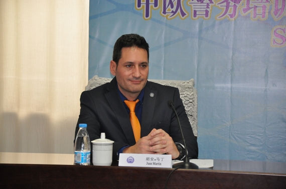 教官代表胡安·马丁先生在结业典礼上致辞。他说,非常感谢中方提供本次机会,感谢山东警察学院的热情招待。各位学员的素质非常高,我们觉得我们在学员身上学到的东西远远超过所教授的。希望通过本次培训工作,进一步加强中欧间的联系交流,共同提升应对处理大型群体性事件的能力和水平,维护正常社会秩序。