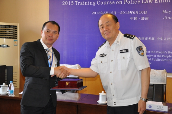 王离京副院长出席结业典礼并讲话,向培训班学员颁发了结业证书,赠送了纪念品。他说,在山东警察学院学习期间,我们为大家开设了中国国情、追逃机制与方法、中国国际警务合作、中国警务信息化的新发展、太极拳、中国公安机关的执法规范化建设、中国司法体制、中国警务指挥体系、跨国犯罪趋势与对策等专题,并邀请了公安部和公安厅相关业务专家为大家授课。还安排大家与学院的专家学者进行了座谈交流。此外,还组织大家赴青岛市公安局考察了执法规范化建设,游览了济南趵突泉、大明湖、山东省博物馆等景点。通过这些专题、交流和参观考察活动,使大家对中国的公安机关和公安工作、中国的经济社会发展情况有了相对全面的了解。王离京副院长指出,作为警察,维护社会稳定、打击犯罪是我们大家共同的职责。相信,通过成功举办本期培训班,必将进一步增强我们之间的友谊和相互信赖,进一步促进中国与老挝和缅甸警方之间的相互理解与友好合作。