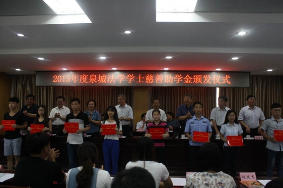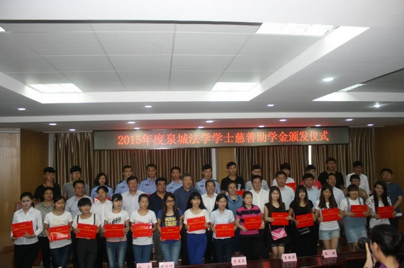 “泉城法学学士慈善助学金”是由济南市慈善总会和济南市法学会共同发起,针对驻济政法院校和高校法律院系中生活困难、品学兼优的在校生设立的专项助学金。我院自2011年起一直积极参与该项活动,由我院济南市法学会学术委员会委员负责联络,学生工作处组织实施,每年都按照严格的标准和程序推选出学生受助。今年的慈善助学活动,学院工会专门从我院“慈心一日捐”、“爱心一日捐”活动善款中捐赠济南市法学会慈善工作站10000元。我院有5名学生获得“泉城法学学士慈善助学金”,每名学生3000元,并获赠10套最新版公务员考试用书。