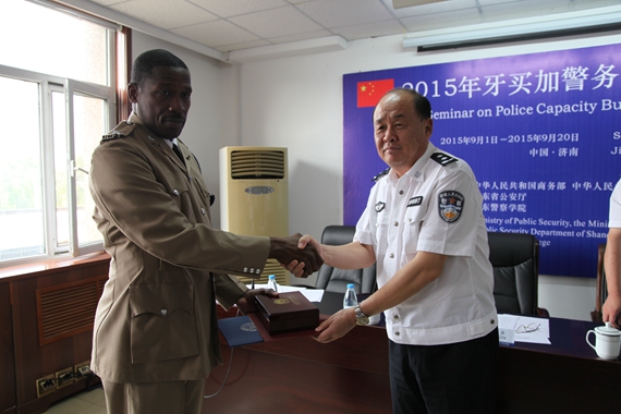 仪式上,王离京副院长向培训班学员颁发了结业证书,赠送了纪念品。他说,在山东警察学院学习期间,我们为大家开设了中国治安防控体系、紧急警务处置指挥要点、信息主导警务、中国警务指挥体系、中国公安机关的执法规范化建设、中国国际警务合作、群体性事件现场处置等专题,并特意邀请了公安厅相关业务专家为大家授课。同时,还安排大家与山东警察学院的专家学者进行了座谈交流。组织大家赴淄博市公安局考察了执法规范化建设,游览了济南趵突泉、大明湖、山东省博物馆等景点,并于上周日参观了我们的明水校区。通过这些专题、交流和参观考察活动,使大家对中国的公安机关和公安工作、中国的经济社会发展情况有了相对全面的了解。王离京副院长指出,作为警察,打击恐怖主义是我们共同的职责。相信,通过成功举办本期培训班,必将进一步增强两国之间的友谊和相互信赖,进一步促进两国警方之间的相互理解与友好合作。