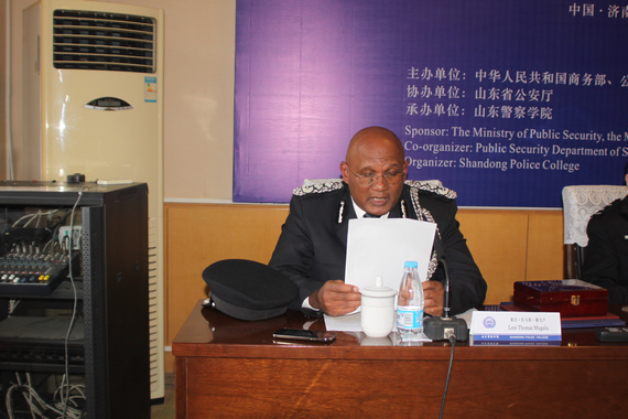 外警代表、乌干达警察局法医鉴定司司长莱尼·托马斯·穆戈卢先生在结业仪式上致辞,对学院给予的热情的接待表示感谢。他说,中国警方优秀的实践经验是我们效仿的榜样,同时,伟大中国人民的热情好客也将是我们难忘的记忆。回国后,我们会将在此所学灵活运用到今后的工作实践当中去。同时也希望中乌双方间有更深层的交流合作,促进双方关系深入发展。
