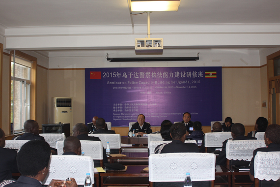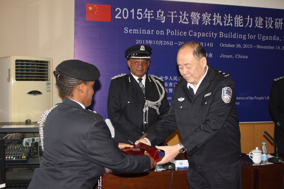 王离京副院长在结业仪式上讲话,向学员颁发了结业证书,赠送了纪念品。他说,在学院学习期间,我们为大家开设了中国及山东省概况、信息主导警务、中国警务指挥体系、中国公安机关的执法规范化建设、中国治安防控体系、中国警务信息化的新发展、跨国犯罪趋势与对策、警务实战技能等专题讲座,还安排大家与学院的专家教授进行了交流,组织大家赴东营市公安局考察了反恐建设,游览了济南趵突泉、大明湖、山东省博物馆等景点,并参观了我们的明水校区。通过这些专题、交流和参观考察活动,使我们彼此之间对各自国家的公安机关、公安工作及彼此的文化传统有了相对全面的了解。乌干达同行们在专业技能方面所表现出来的高水平,以及认真的学习态度和严整的纪律作风给我们留下了深刻的印象。王离京副院长指出,在犯罪日益多样化、智能化、国际化的今天,维护社会稳定、打击犯罪是我们共同的职责。相信通过成功举办本期培训班,必将进一步增强中乌两国间的友谊和相互信赖,进一步促进中乌两国警方的相互理解与友好合作。