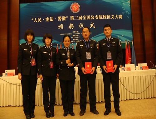 11月13日,由全国公安文联等单位举办的第三届“人民﹒宪法﹒警徽”全国公安院校征文大赛颁奖仪式在中国人民公安大学举行,我院荣获组织奖,并获一等奖1人,二等奖1人,三等奖2人,优秀奖1人。