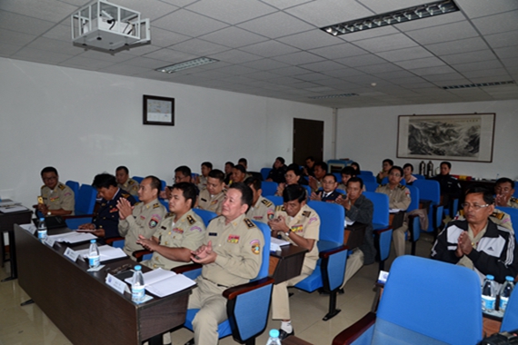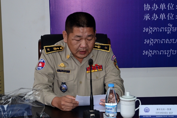 王离京副院长出席开班仪式并讲话。他简要介绍了学院的基本情况和举办本次培训班的背景。王离京副院长指出,柬埔寨是中国在东南亚的友好合作伙伴,中柬两国建交57年来,两国在一系列重大国际和地区性问题上看法基本一致,在国际事务中密切配合。两国高层领导互访频繁,各种交往不断增加,合作领域不断扩大。举办本次研修班就是落实两国警务交流合作的形式之一。希望通过这样的双向互动,能让各位柬埔寨同行了解中国社会以及中国警务工作的相关情况。同时,我们也希望通过与各位学员的交流,学到柬方警务工作一些好的经验和做法。