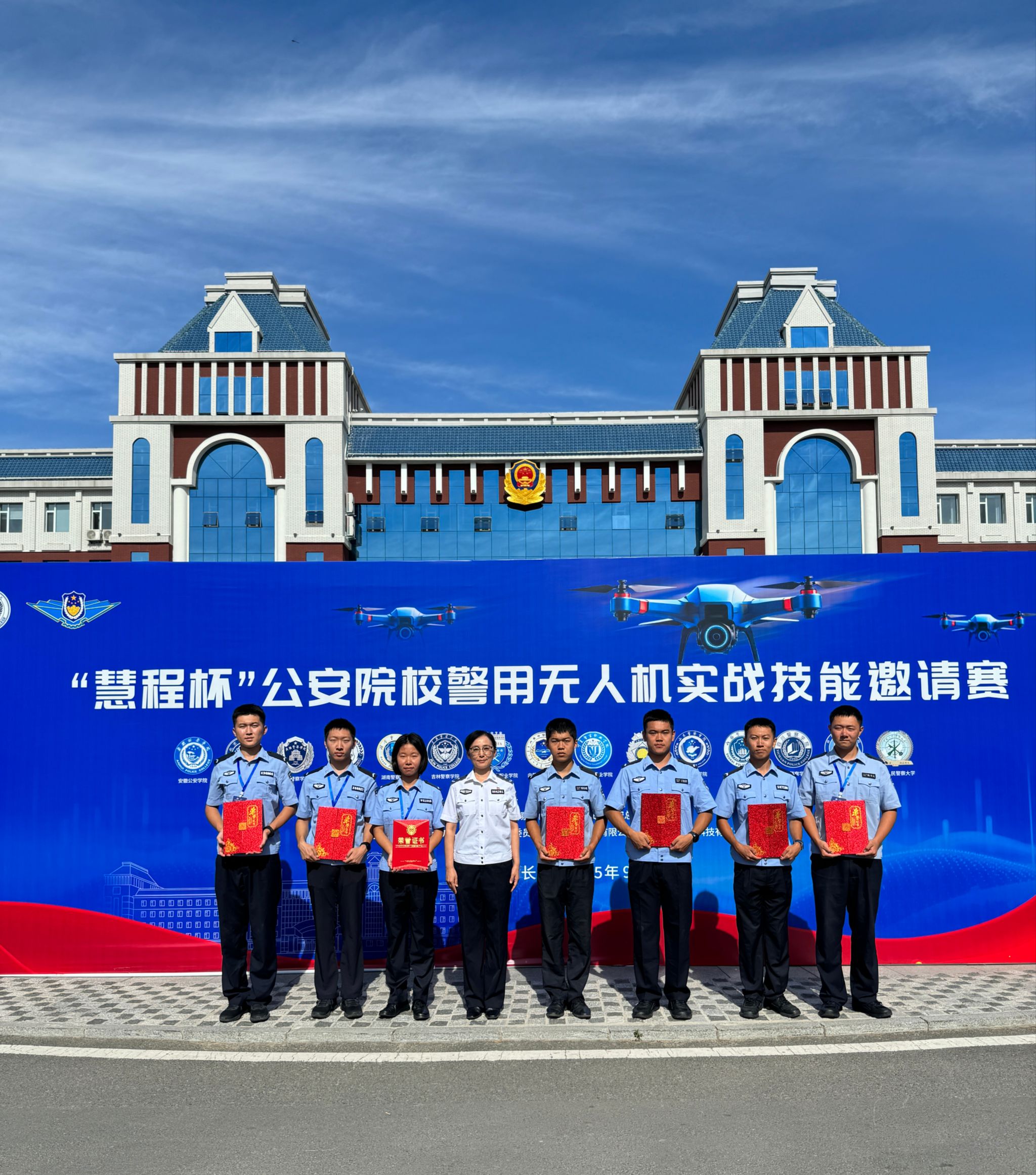 本次大赛汇聚了来自全国15所公安院校的优秀学生代表,他们同台竞技、切磋技艺,充分展现了新时代预备警官的科技素养与实战能力。我校师生克服了时间、装备、技术、协作等困难,经过7天高强度训练,在比赛中勇创佳绩、满载而归。警务信息学院学生夏侯斌、治安学院学生傅传超在超视距精准投送科目荣获一等奖;警务信息学院学生张荣畅、交通管理工程学院学生丁梓洋在目标侦查科目荣获二等奖;警务信息学院学生陈奎元在复杂环境追击科目中荣获三等奖。