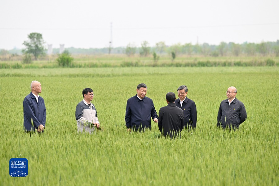 5月11日至12日,中共中央总书记、国家主席、中央军委主席习近平在河北考察,并主持召开深入推进京津冀协同发展座谈会。这是11日上午,习近平在沧州市黄骅市旧城镇仙庄片区旱碱地麦田考察时,同种植户、农技专家亲切交流。新华社记者 殷博古 摄