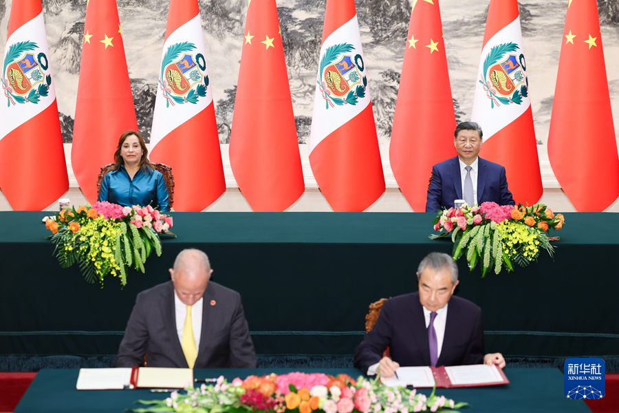 会谈后,两国元首共同见证签署《中华人民共和国政府和秘鲁共和国政府2024年至2029年共同行动计划》以及经贸合作、数字经济、科技创新、检验检疫、新闻媒体等领域多项双边合作文件。双方宣布实质性完成自由贸易协定升级谈判。