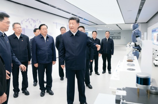 2024年11月4日至6日,中共中央总书记、国家主席、中央军委主席习近平在湖北考察。这是5日下午,习近平在武汉产业创新发展研究院考察。 新华社记者 鞠鹏/摄